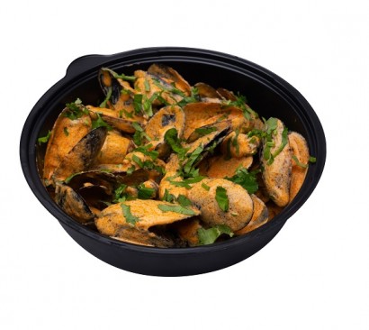 Рис,нори,мидии помидор,сыр творожный,бекон,соус терияки